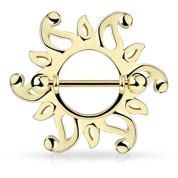 1 x Sunburst Rhodium / Gold Plated Brass Nipple Shield – Surgical Steel Barbell