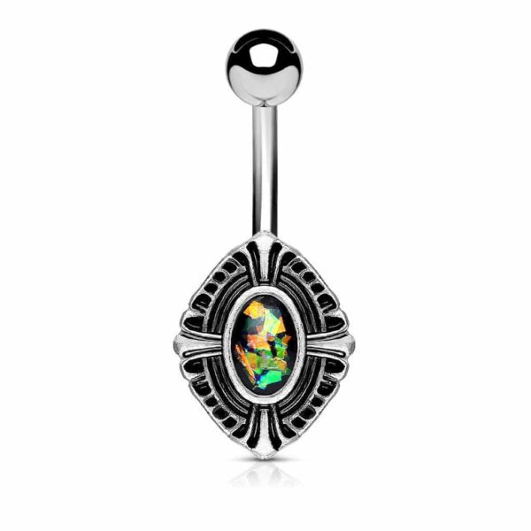 Antique Silver Plated Celtic Cross Surgical Steel Belly Bar Opal Glitter Centre