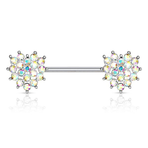 Crystal Paved Heart Ends Nipple Bar With 316L Surgical Steel Barbell