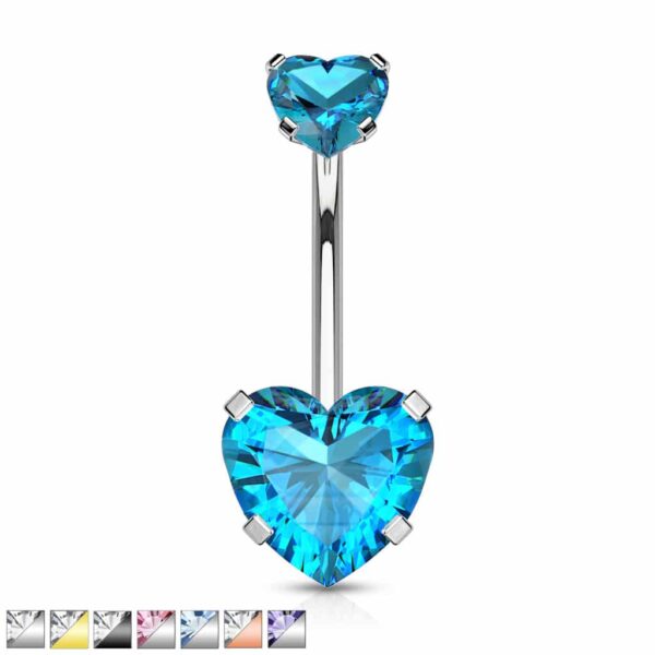 - CZ Heart Prong Set Surgical Steel Belly Bar