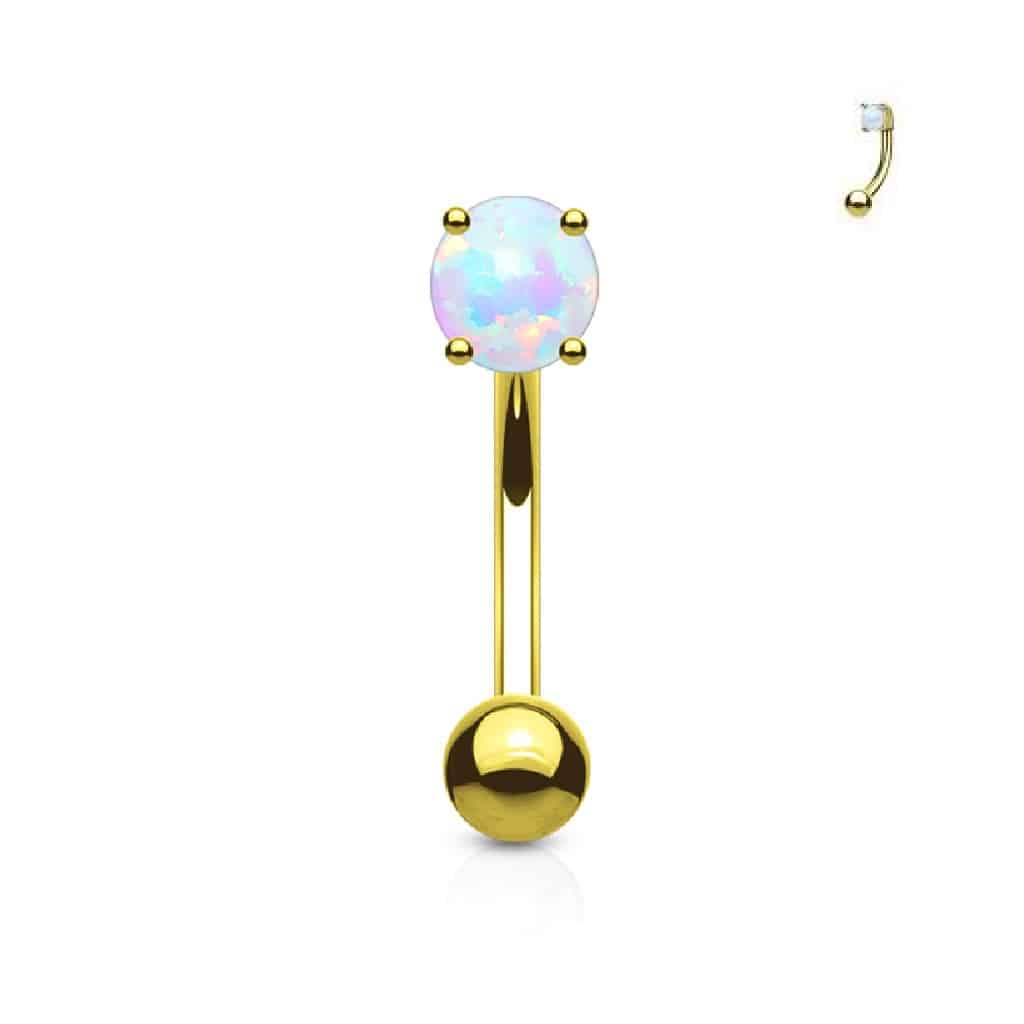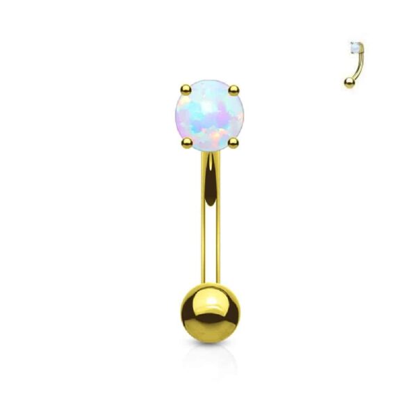 Opal Prong Set Top Surgical Steel Eyebrow Ring / Petite Belly Bar