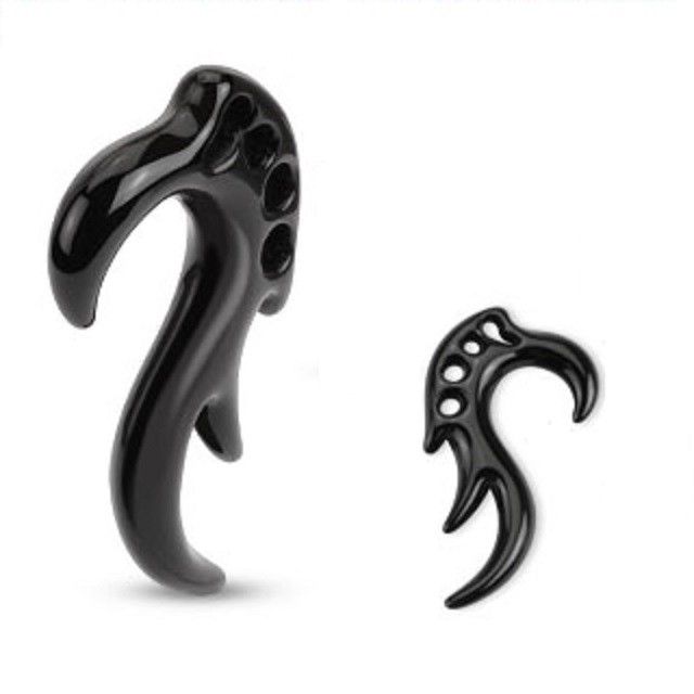 Solid Acrylic Black Tribal Hanging Taper / Ear Stretcher